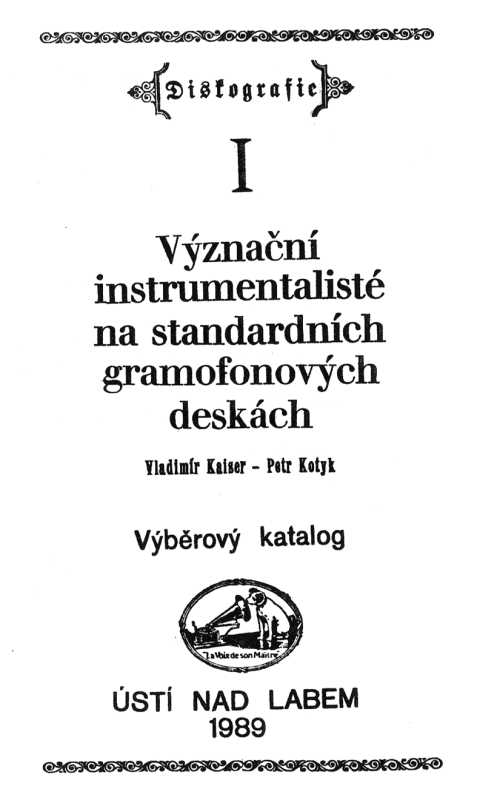 Diskografie I, Bulletin zvukového oddělení Archivu města Ústí nad Labem Vladimír Kaiser – Petr Kotyk, Význační instrumentalisté na standardních gramofonových deskách, výběrový katalog Vydal Archiv města Ústí nad Labem 1989, 82 s. Formát A 5 rozebráno |